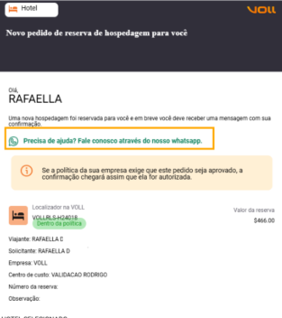 A partir desta versão, sempre que você receber um voucher por e-mail, encontrará um link direto para o WhatsApp da VOLL. Isso significa que, se surgir uma dúvida durante a emissão, alteração ou uso de um voucher, basta tocar no link e enviar uma mensagem.
