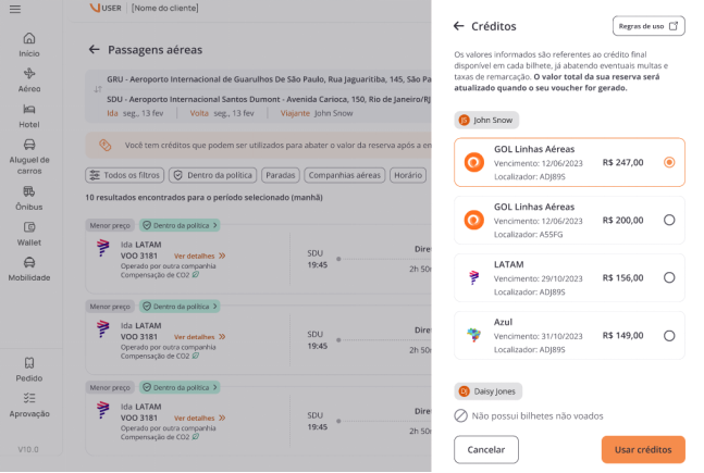 Você decide como usar seus créditos de voo