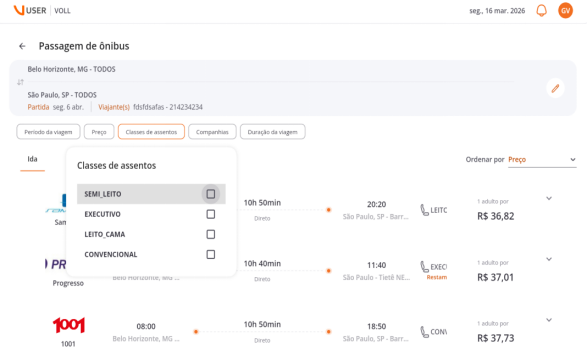 Filtros mais inteligentes para viagens de ônibus