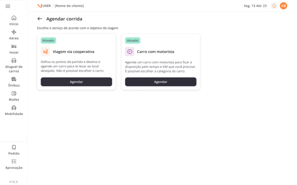 O agendamento de carro com motorista agora funciona dentro do módulo de mobilidade.