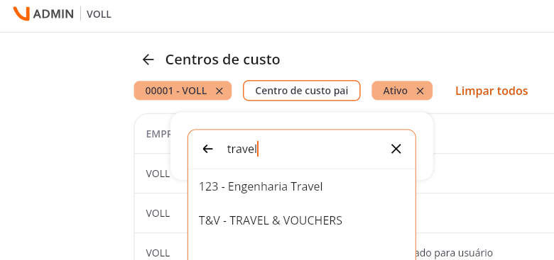 O novo filtro permite filtrar pelo centro principal e todos os centros de custo filhos associados, quando houver essa estrutura.